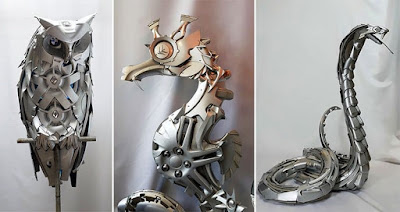 THIS ARTIST TURNS OLD HUBCAPS INTO AWESOME LOOKING CREATURES!!!